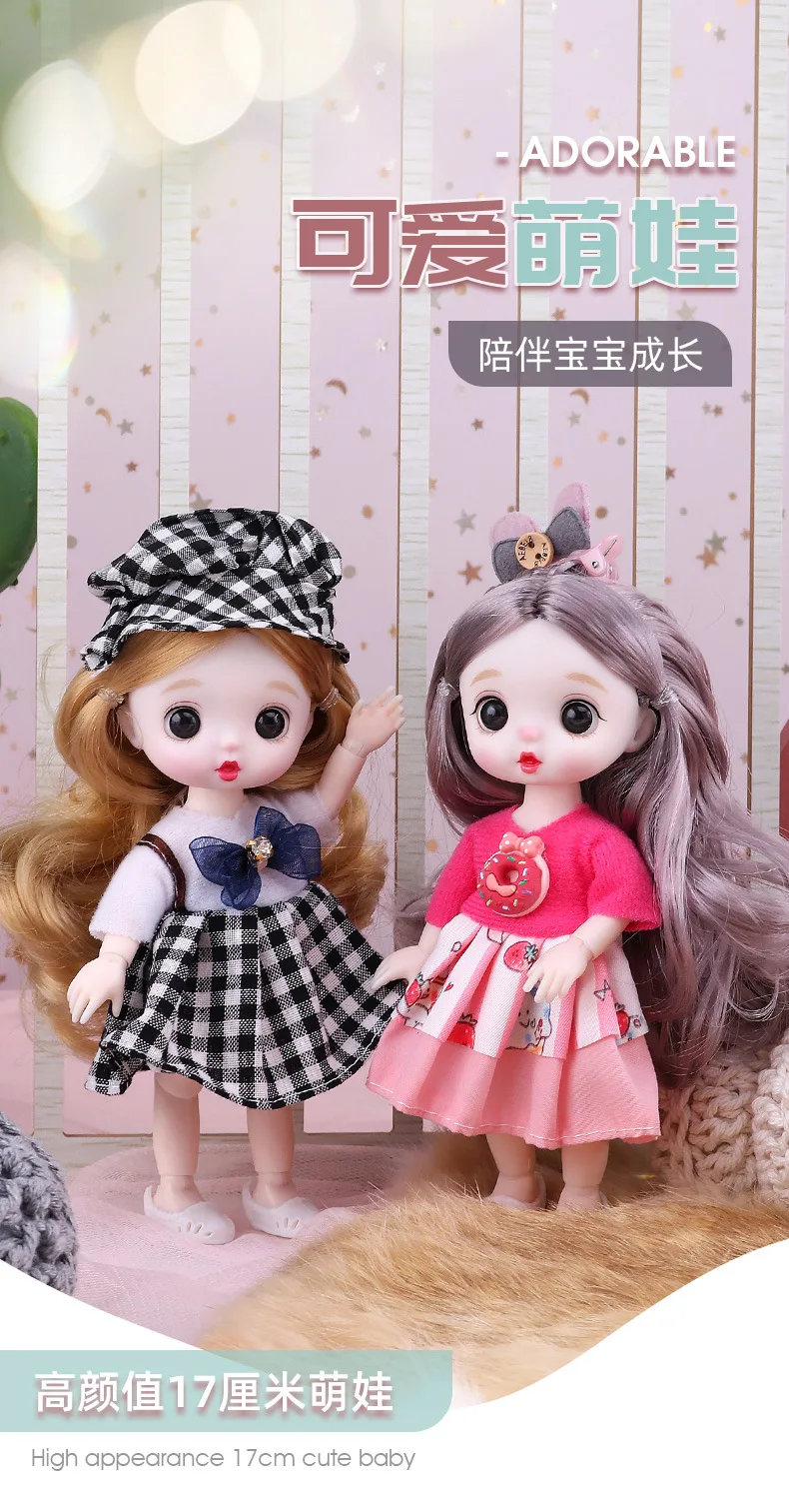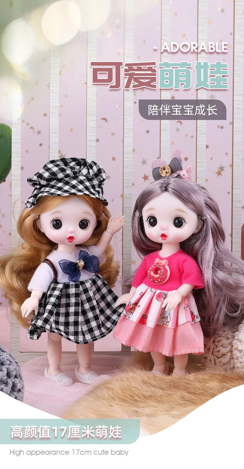 17cm BJD Doll 13 Movable Joints Cute Face Realistic Big Eyeball And Fashion Clothes Suit With Shoes Lolita Princess Doll Toy
