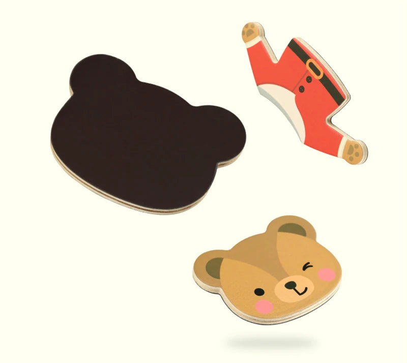 • 3D Magnetic Animal Puzzles Kids Wooden Toys Bear Dressing Up Jigsaw Games Montessori Educational Imagination Toy Gifts For Kids