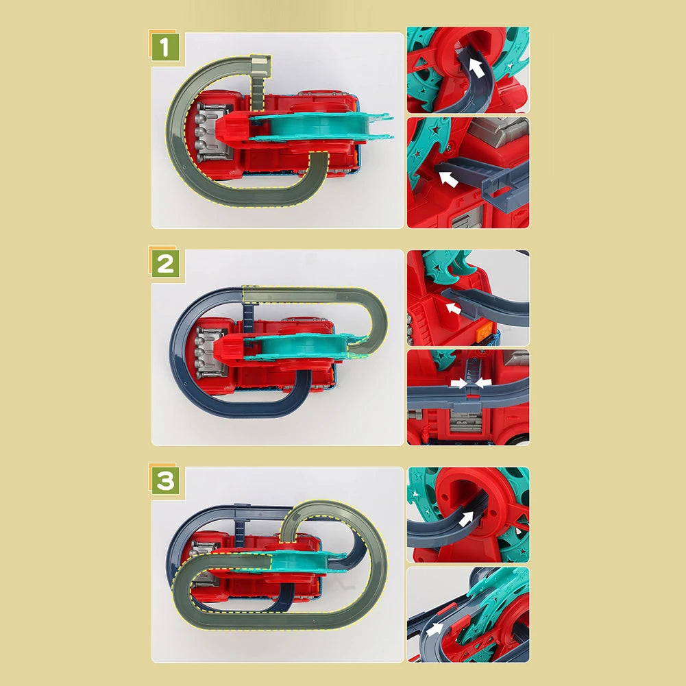 1. Versatile Fire Truck Track Set: Fire rail car toys can freely traverse along the designated track using electric power. It simulates the appearance and functions of a fire truck, allowing it to move forward, backward, left, and right.