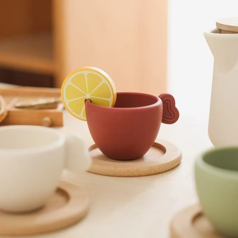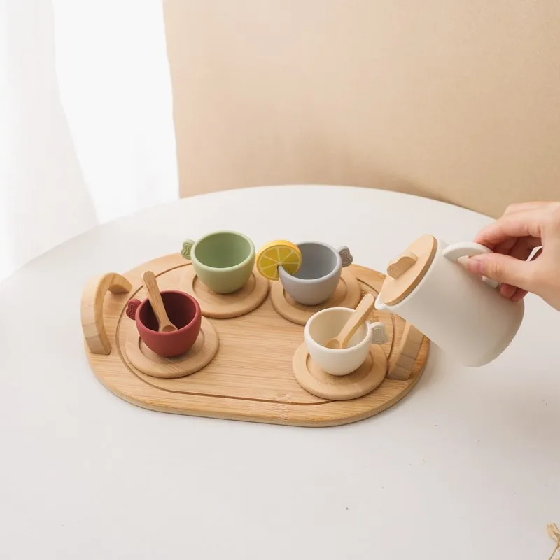 Baby Wooden Montessori Toys Playing House Afternoon Tea Set Model Puzzle Toys For Baby Birthday Toy Numbers Blocks Learning Toy