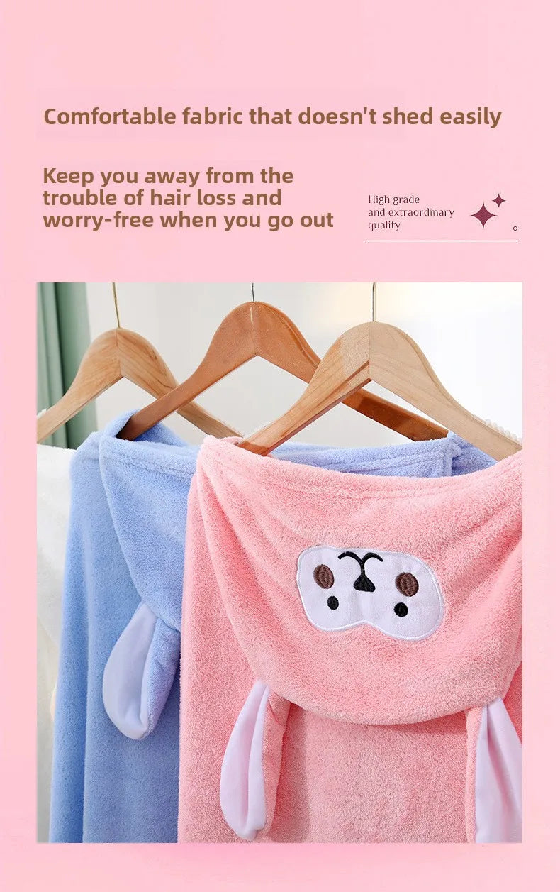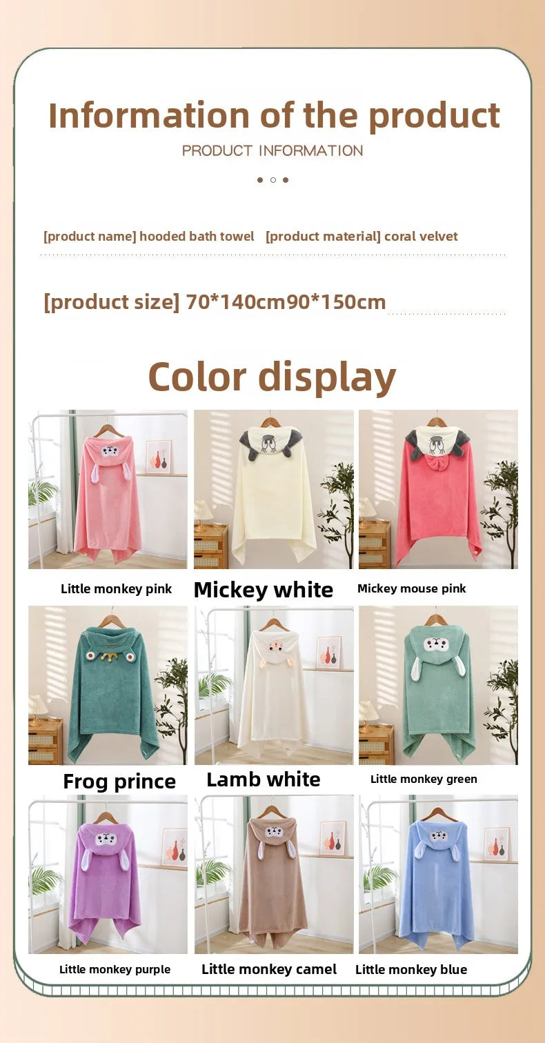 Cartoon Animal Hooded Bath Towel for Kids Coral Fleece Super Absorbent Non Shedding Bathrobe Cape for Toddler Baby