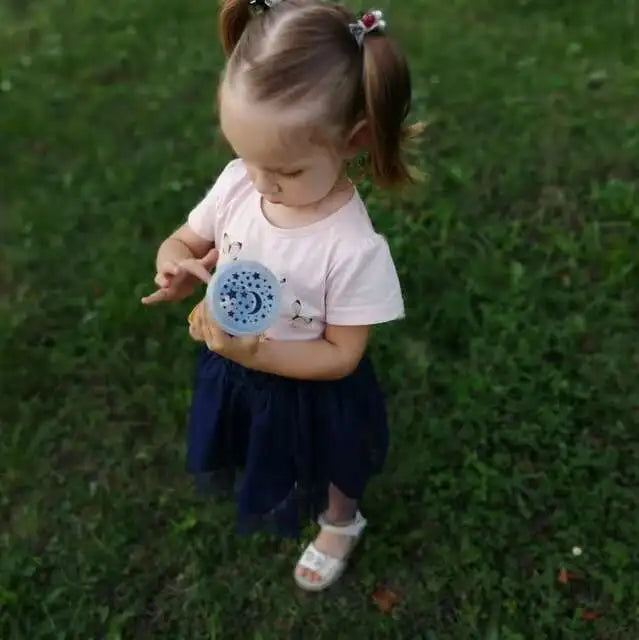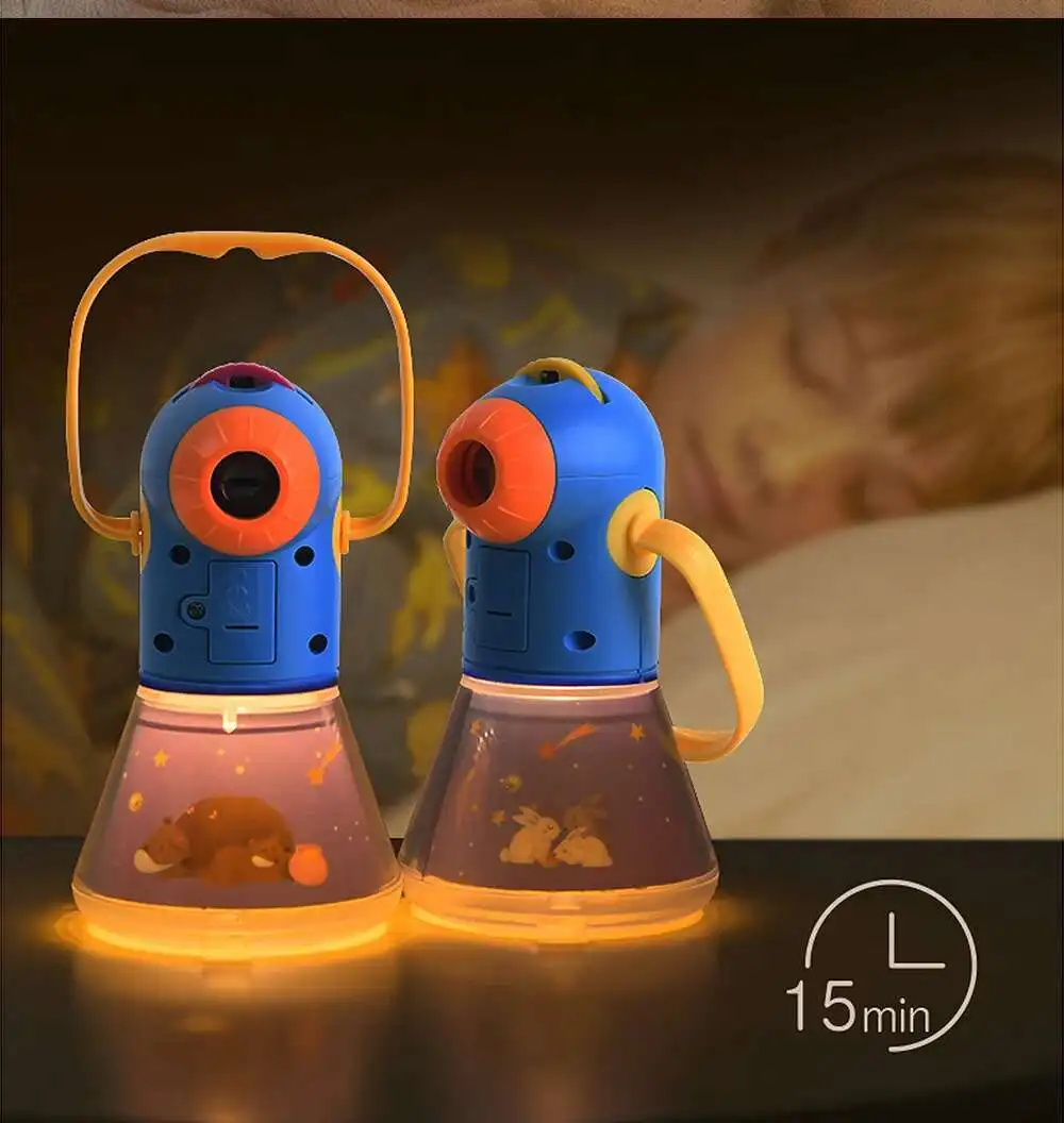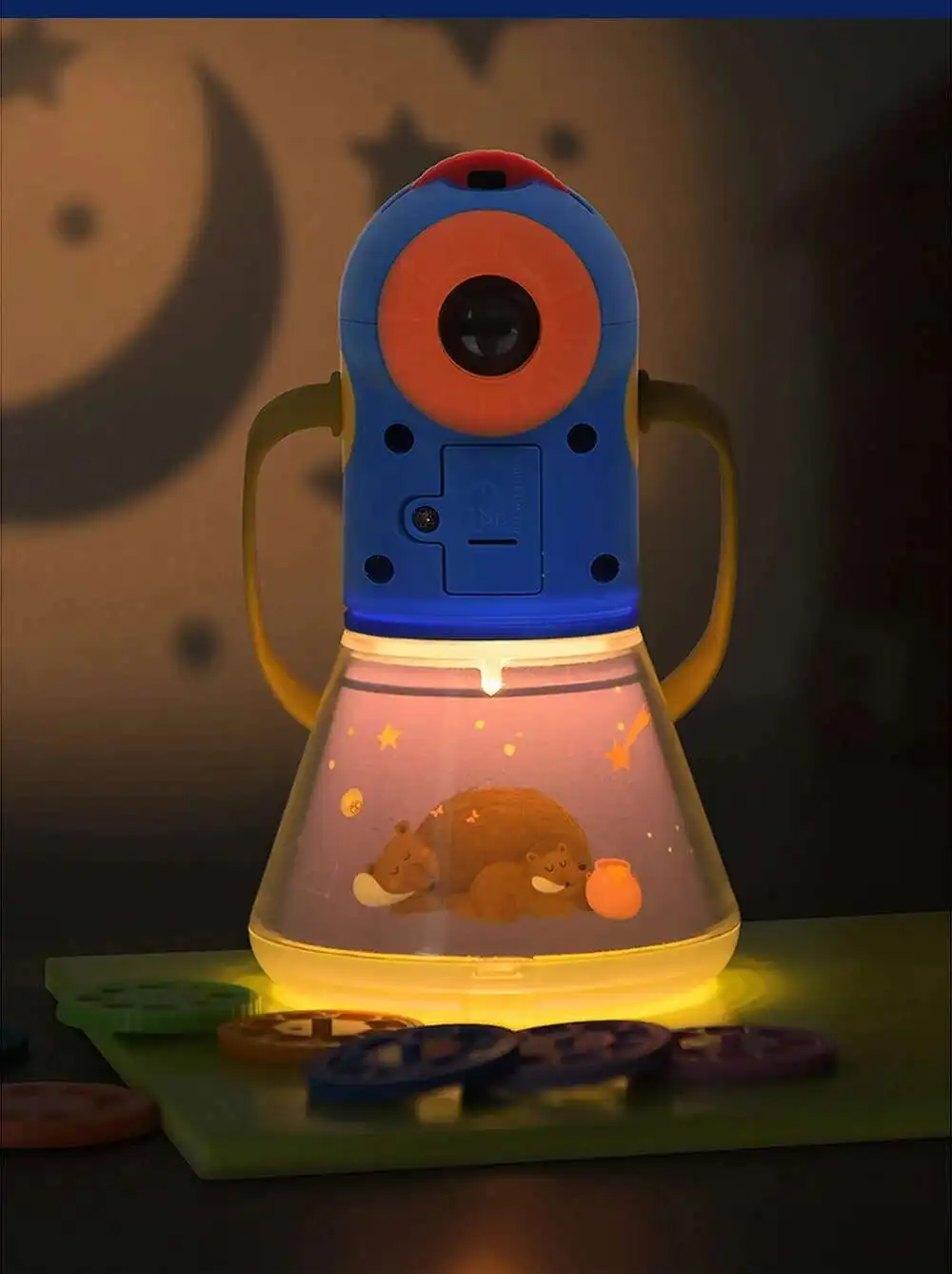 It adopts new optical components to improve projection technology for larger and clearer image. Clear and vivid projection can easily stimulate kid's interest. Projection distance: the farther the distance, the greater imaging will be. A reasonable focal length projection is about 20-60 inch. This Story Projection Torch is portable and lightweight! Only erase the lights in the bedroom, turn the disc, playing like a child reading a picture book. Everyone can enjoy themselves before going to bed and take baby to a gentle sleep.