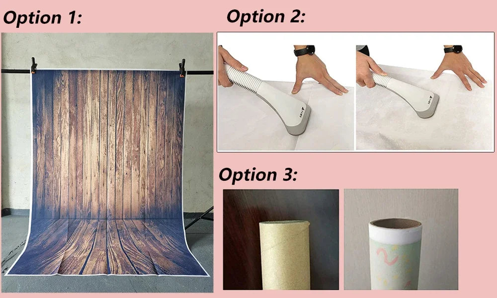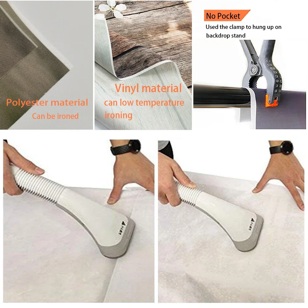 Ironing the back side (not the image side) with low temperature to easily remove the crease, To avoid possible steam damage, place a layer of dry cloth between the backdrop and the iron