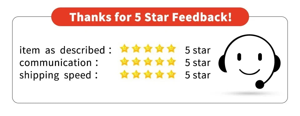 Your positive feedback is the best encouragement for us. Please leave us a 5 stars positive feedback if you satisfied with this order when you receive the items. If you have any question, Please contact us. I will reply within 12 hours and try my best to resolve your problems.