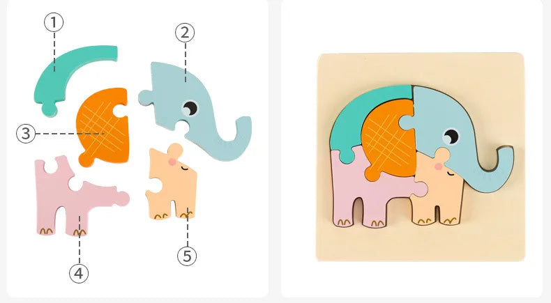 The pattern is composed of 5-7 pieces of puzzle, with the concave and convex design of the bottom plate to help children fix the puzzle and make it easier