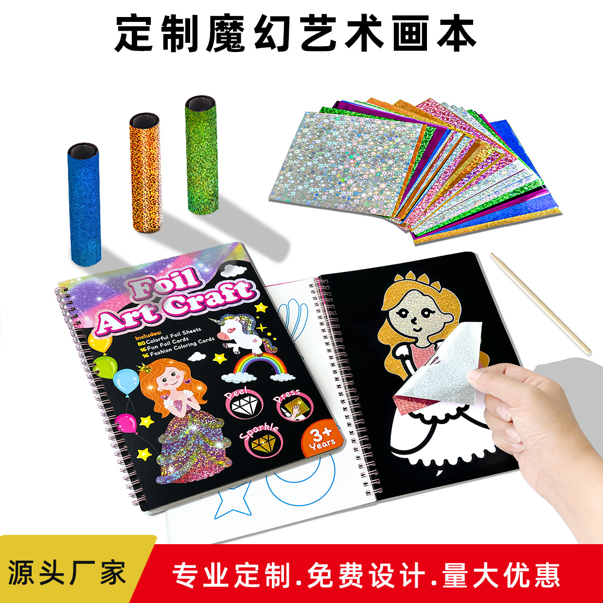 魔幻艺术画儿童卡通diy套装foil art 涂色线圈本魔幻艺术贴画本