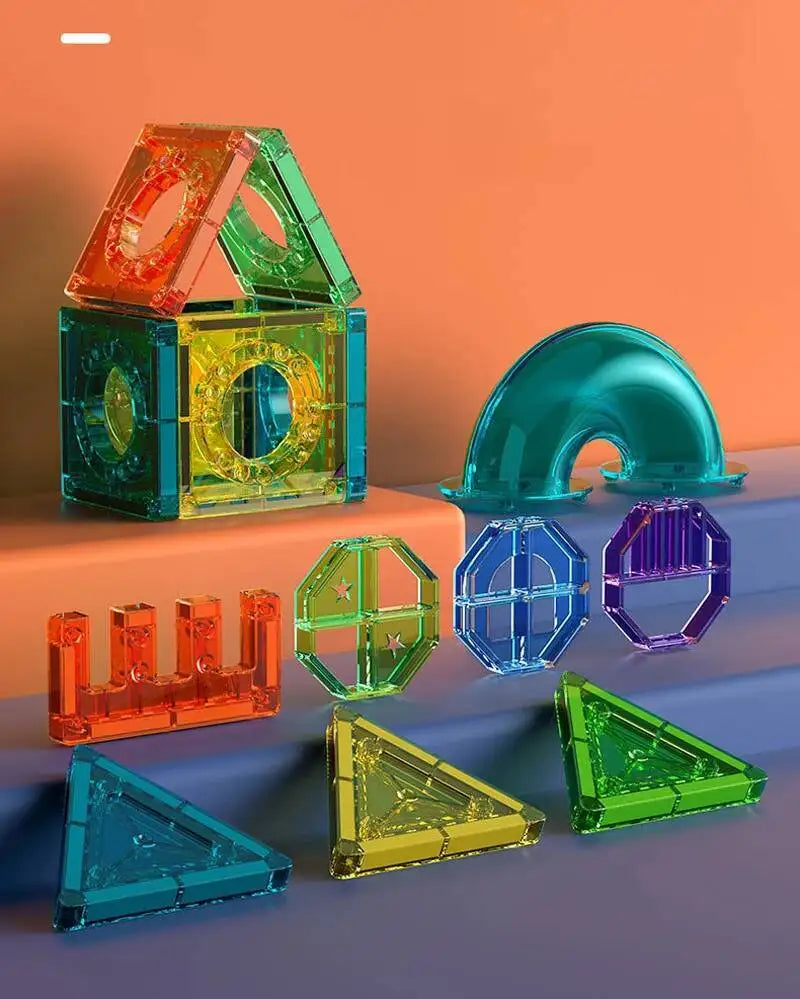 2.【GROWTH AND LEARNING】3D Color magnetic tiles,children can stimulate their visual discrimination,brain creativity,hands-on execution,this will make children more independent and grow faster than other children.