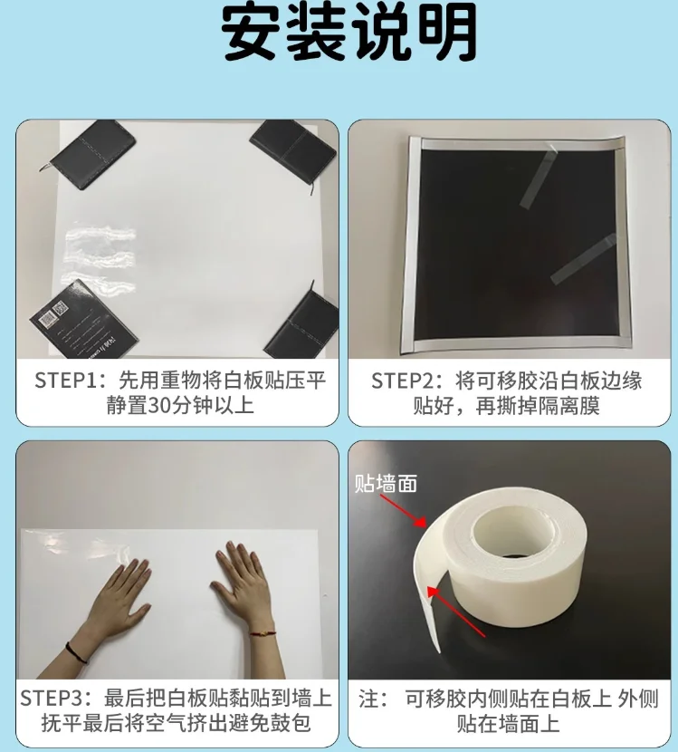 4.Removable adhesive, clear writing, easy to wipe, suitable for various wall surfaces.