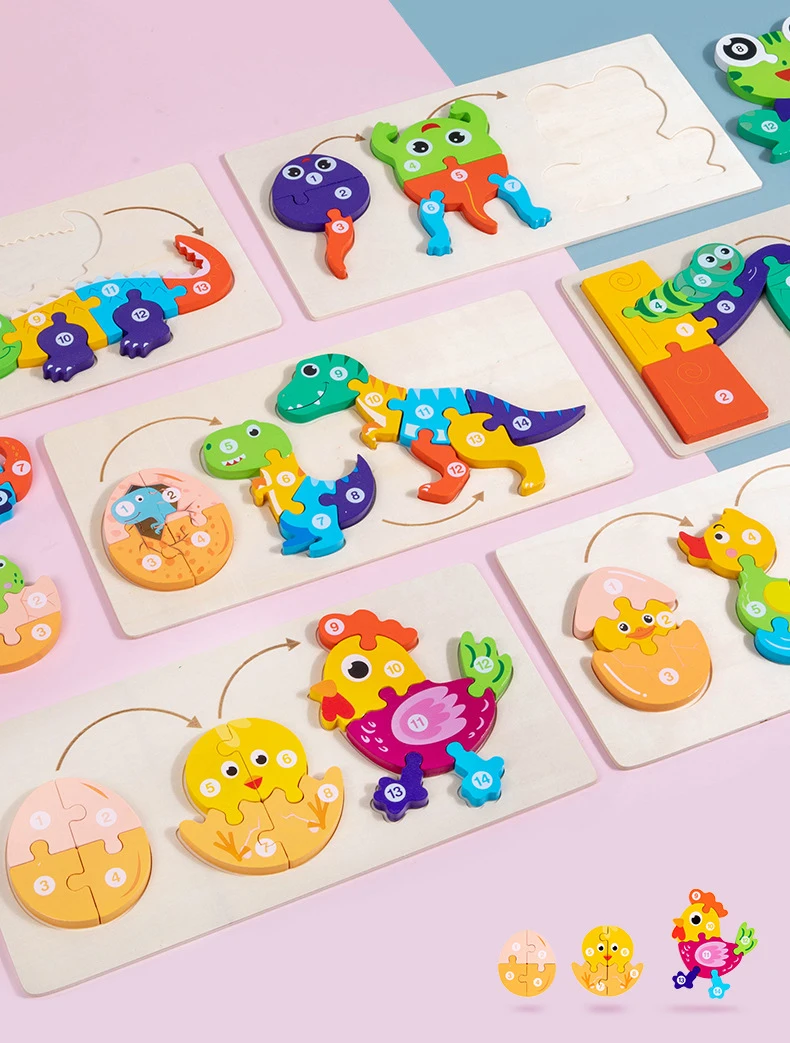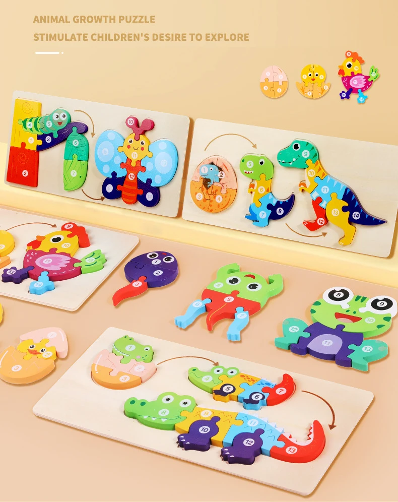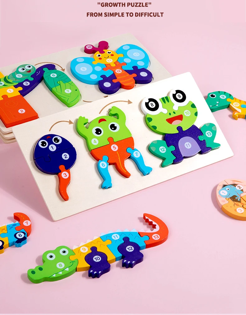 【LEARNING THROUGH PLAY】 Cute animal shape toddler puzzle: Butterfly, Dinosaur, Crocodile, Frog,Chicken,Duck. Each piece has numbers, which help boys and girls to make puzzle easier, exercise children's desire to explore, develop children's patience, imagination, concentration, colors & shapes recognition and hand-eye coordination while playing.