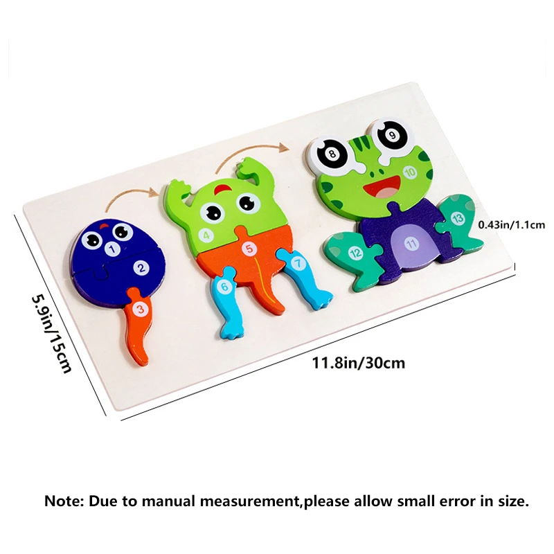 【PERFECT SIZE FOR TODDLERS】Each animal wooden puzzle is 11.8 x 5.9 x 0.43 inches. Kids puzzles pieces are large enough ensure kid's tiny hands can easily pick up and hold. These toddler toys are too big for kid's mouth, so it's safe for children and don't worry that they will swallow the pieces.