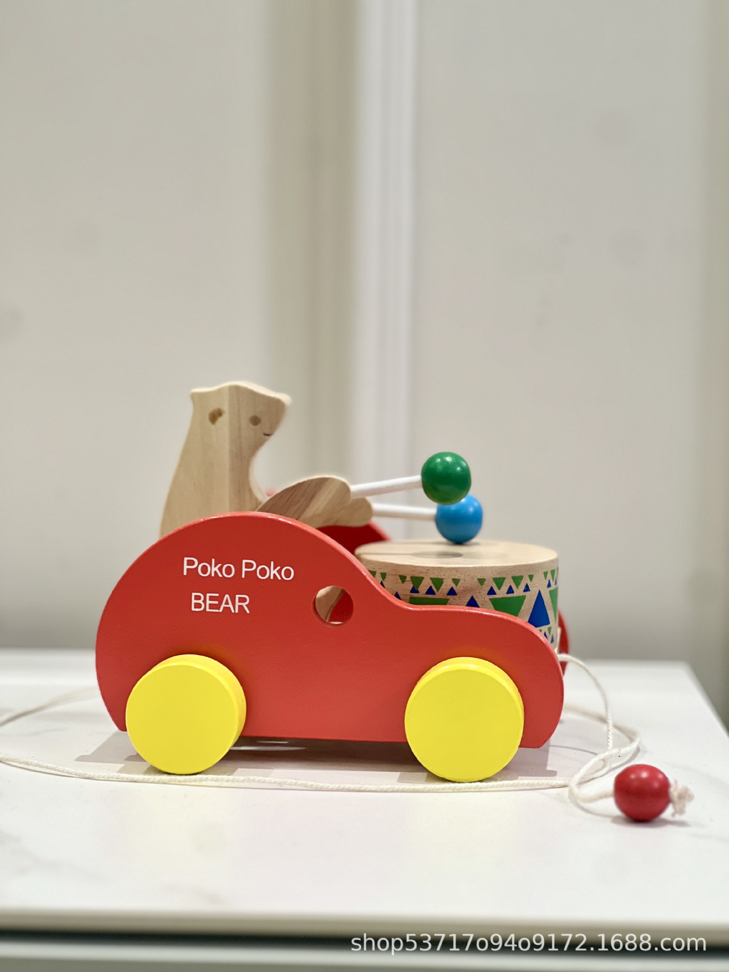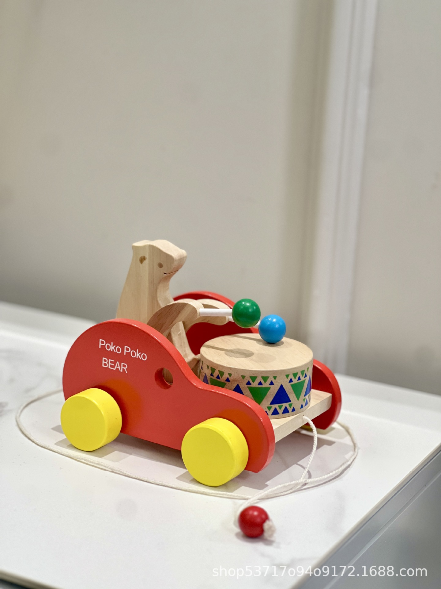 Wooden toy for toddlers pull along walker early education toy children s educational beech wood bear drumming trolley Wooden toy for toddlers pull along walker early education toy children s educational beech wood bear drumming trolley
