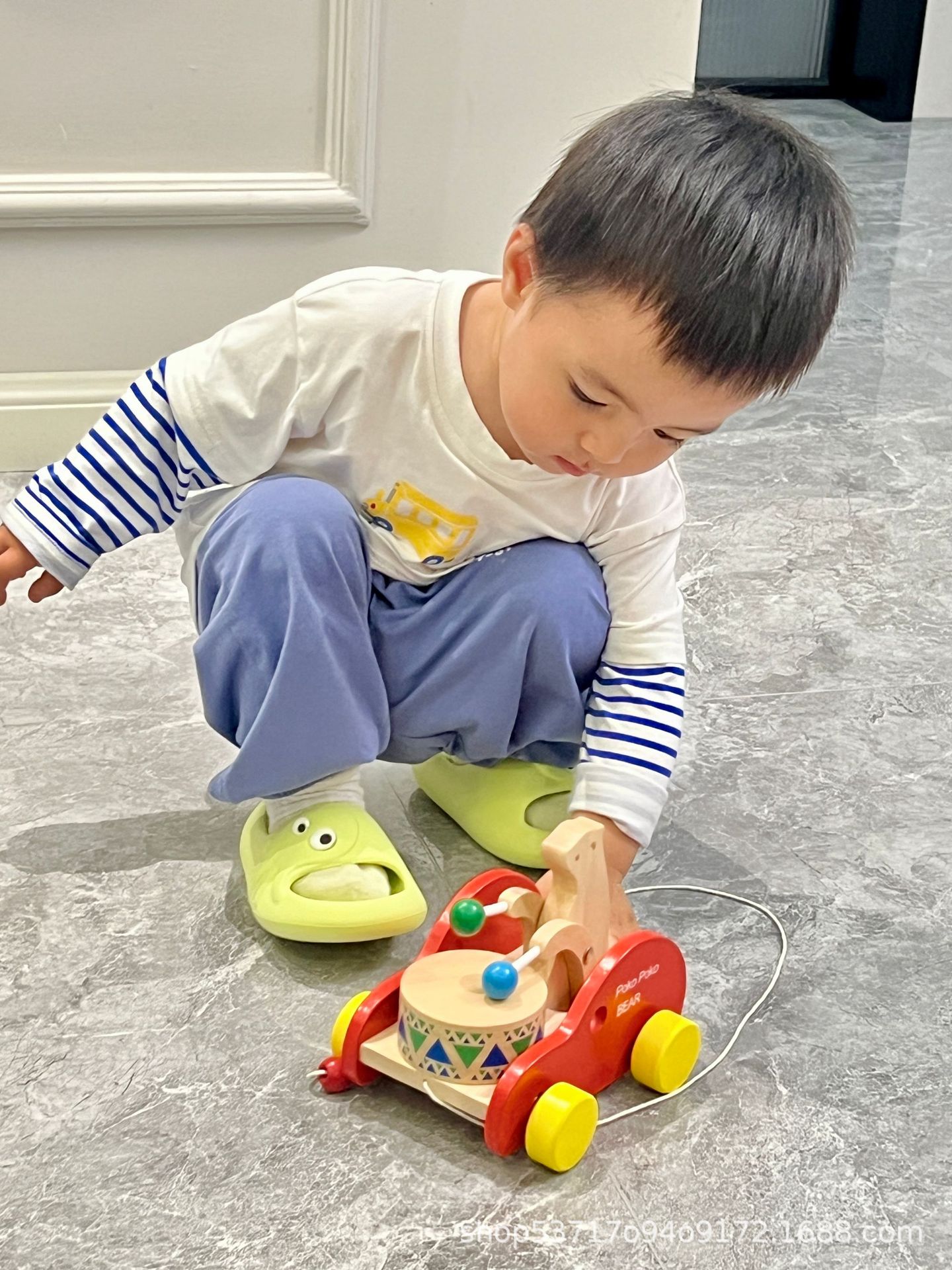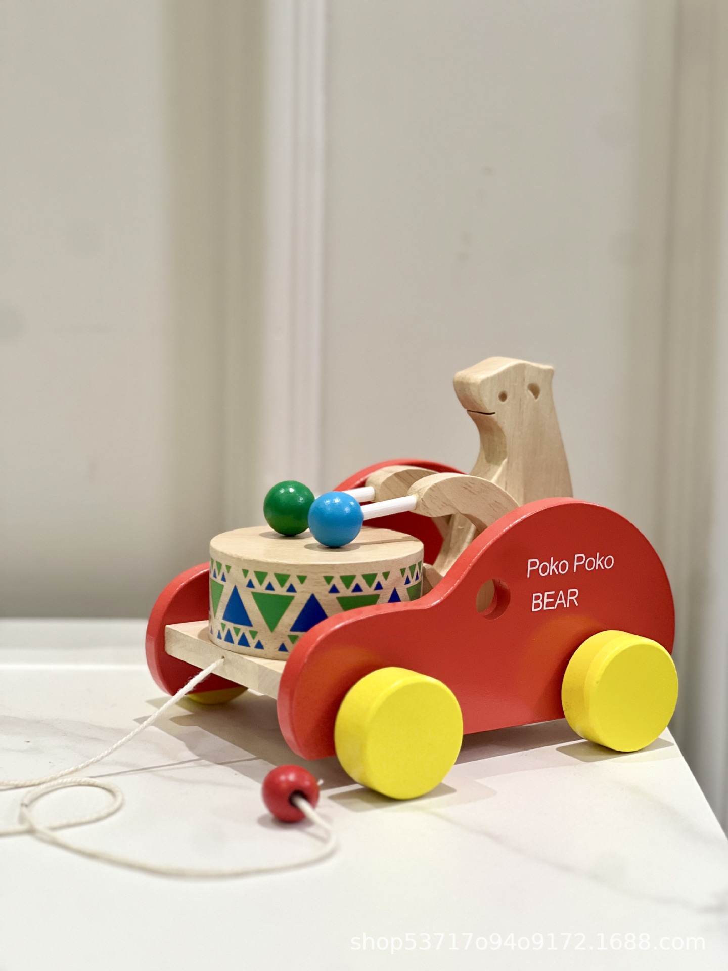 Wooden toy for toddlers pull along walker early education toy children s educational beech wood bear drumming trolley