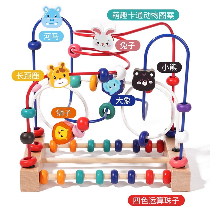Fun and educational children's three-line animal bead maze toy for toddlers aged 0-3 years old, wooden toy, improves concentration and early education.